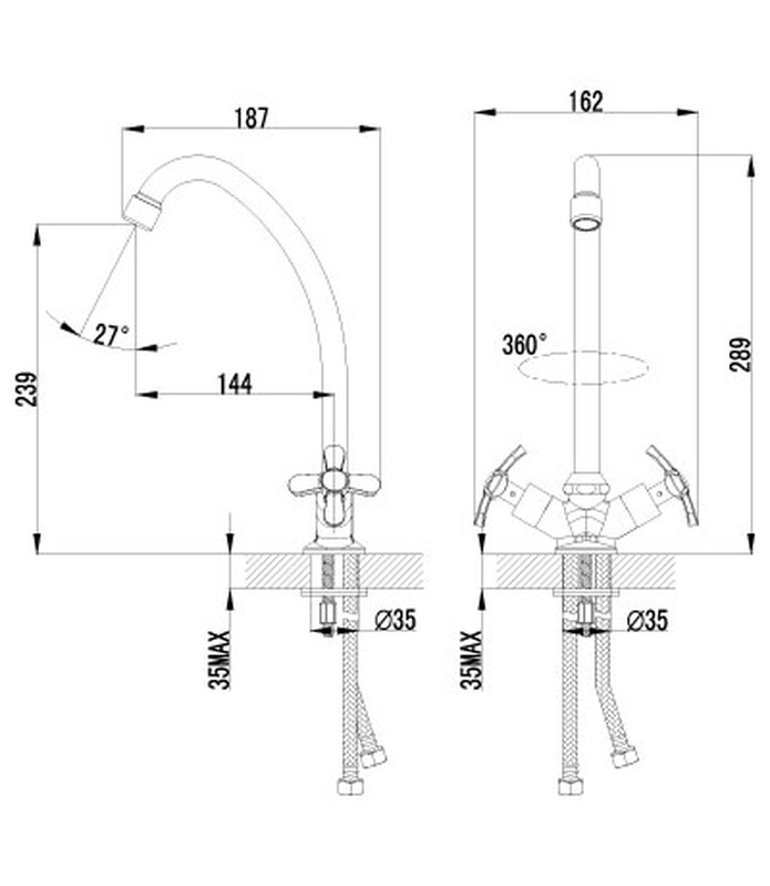 Серия PARTNER.Комплектация:АэраторКран-буксы с керамическими пластинами (угол поворота – 180 градусов)Гибкая подводка 1/2" 35 смМеталлические рукоятки