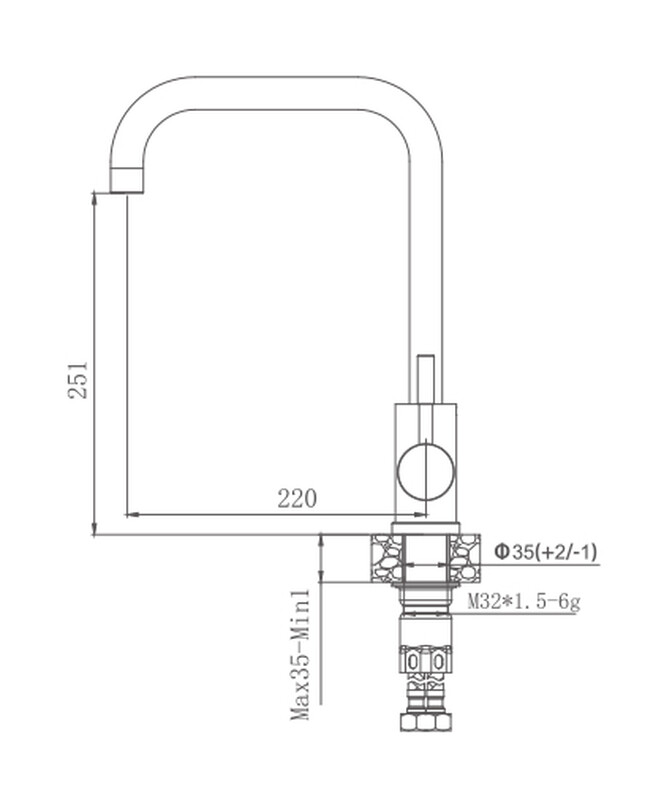 Смеситель для кухни бренда Haiba. Изготовлен из нержавеющей стали. Картридж 35 мм. Укомплектован аэратором. Гибкая подводка 40 см. С поворотным изливом.