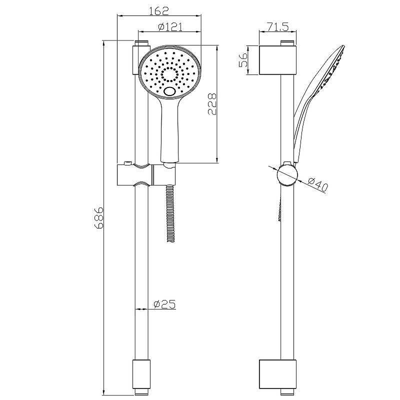 Стойка для душа; Регулируемое по высоте крепление для лейки; Душевой шланг; Душевая лейка