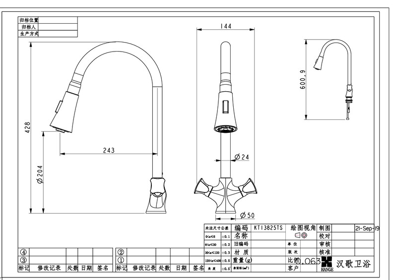 Смеситель для кухни с выдвижной лейкой D&K Hessen.Grimm DA1382501