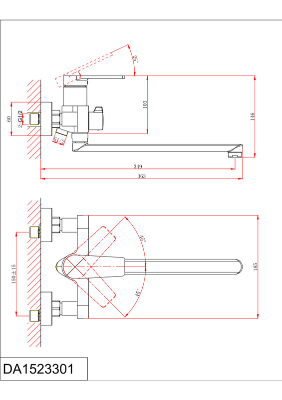 DA1523305 Смеситель для ванны с душем D&K Bayern.Fürth длинный излив черный