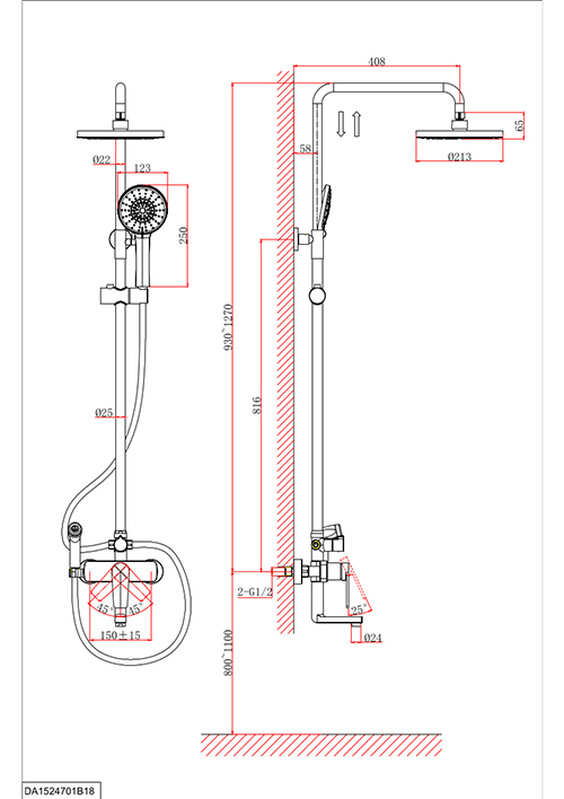 DA1524701B18 Душевая система с гигиеническим душем D&K Bayern.Fürth хром