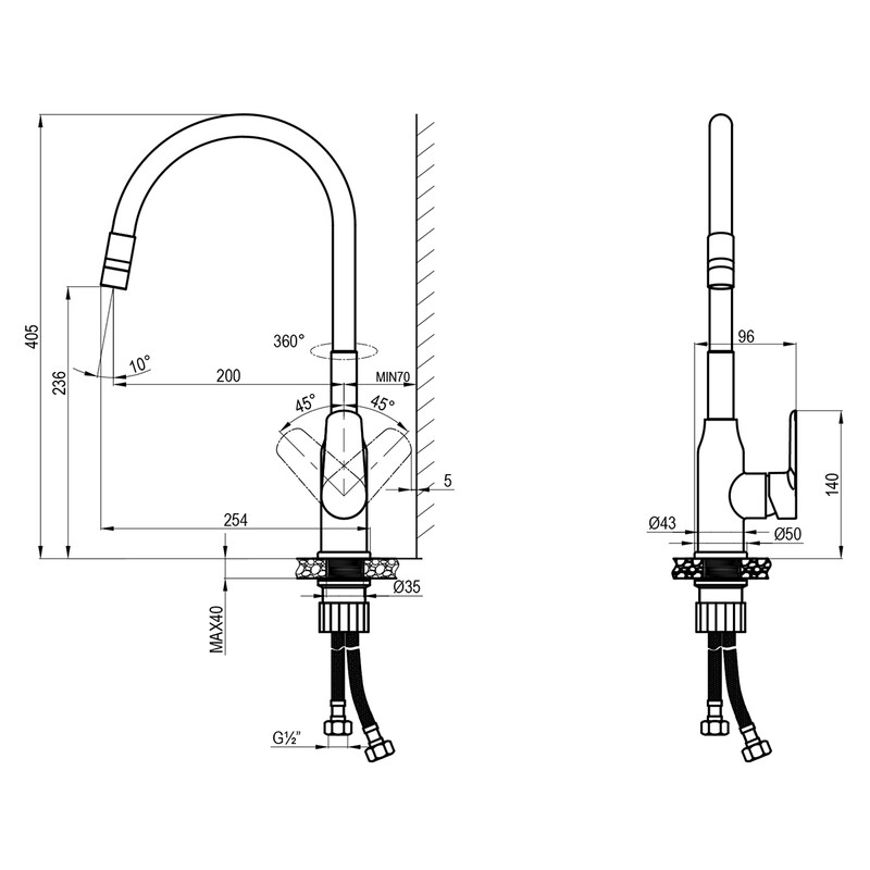 Гибкая подводка для воды ½” Присоединительная группа для настольного крепления