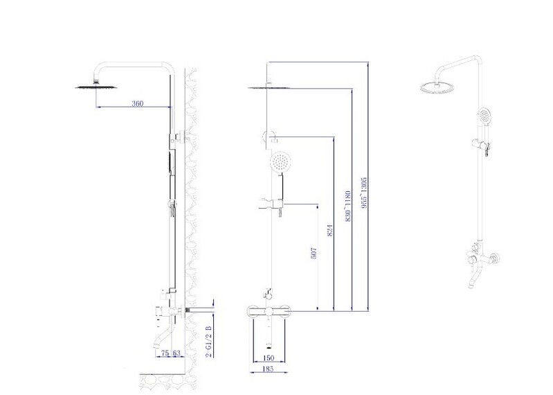 В комплекте 1- режимная душевая лейка, 1-режимный тропический душ, изготовленный из нержавеющей стали SUS304, душевая штанга, держатель душевой лейки, душевой шланг с гайками 150см, смеситель, индивидуальный пакет, паспорт, гарантийный талон