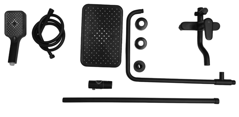 Комплектация: аэратор, керамический картридж 35 мм, шланг 1,5 м, настенное крепление, 1-функциональная лейка, металлическая рукоятка, стойка, верхняя лейка «Тропический душ»