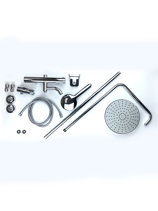 Комплектация: аэратор, керамический картридж 35 мм, шланг 1,5 м, настенное крепление, 1-функциональная лейка, металлическая рукоятка, стойка, верхняя лейка «Тропический душ»