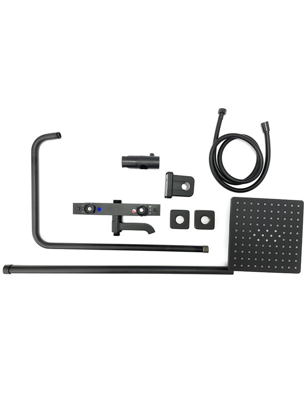 Комплектация: аэратор, керамический картридж 35 мм, шланг 1,5 м, настенное крепление, 1-функциональная лейка, металлическая рукоятка, стойка, верхняя лейка «Тропический душ»
