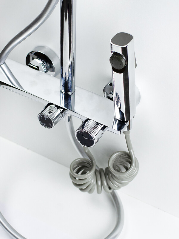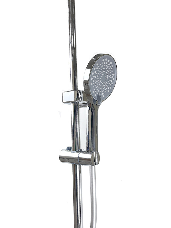 Комплектация: аэратор, керамический картридж 28 мм, шланг 1,5 м, настенное крепление, 1-функциональная лейка, металлическая рукоятка, стойка, верхняя лейка «Тропический душ»