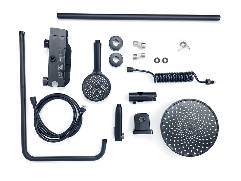 Душевая система SANTREK AQUA-1270 PRESTIGE (SAP-1270) шар. d-28 с верхним душем, смесителем, гигиен лейкой (черный)