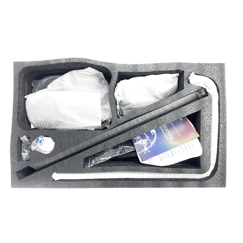 Смеситель, лейка душевая, держатель лейки душевой, лейка тропическая, лейка гигиеническая, шланг душевой, шланг для гигиенической лейки, стойки душевые 2 шт, крепление стойки к стене, эксцентрики 2 шт. и отражатели 2 шт, паспорт