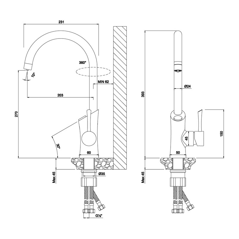 1. Смеситель для кухни Comfort LM3072C с подключением к фильтру питьевой воды