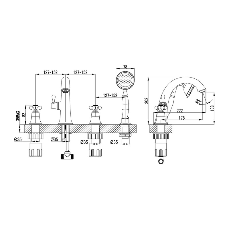 LM2841B Vintage Смеситель для ванны встраиваемый, на 4 отверстия, с аксес., бронза LEMARK