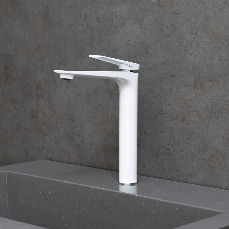 LM5909CW Allegro Смеситель для умывальника высокий, монолитный, хром/белый LEMARK
