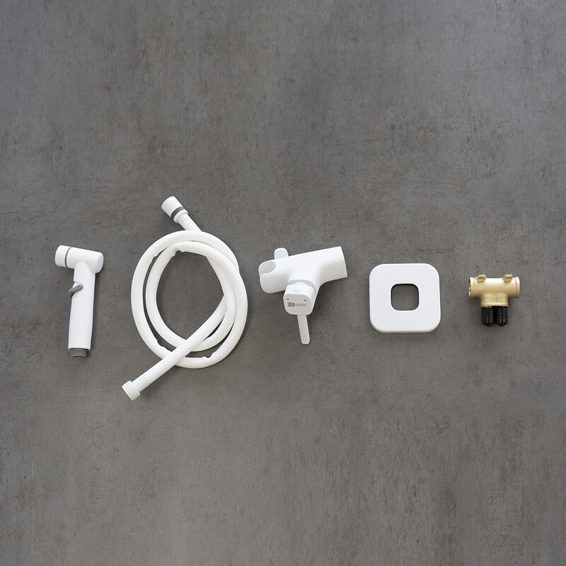 Аксессуары в комплекте: лейка гигиенического душа с регулятором напора воды, душевой шланг 1,2 м (Turn-Free)