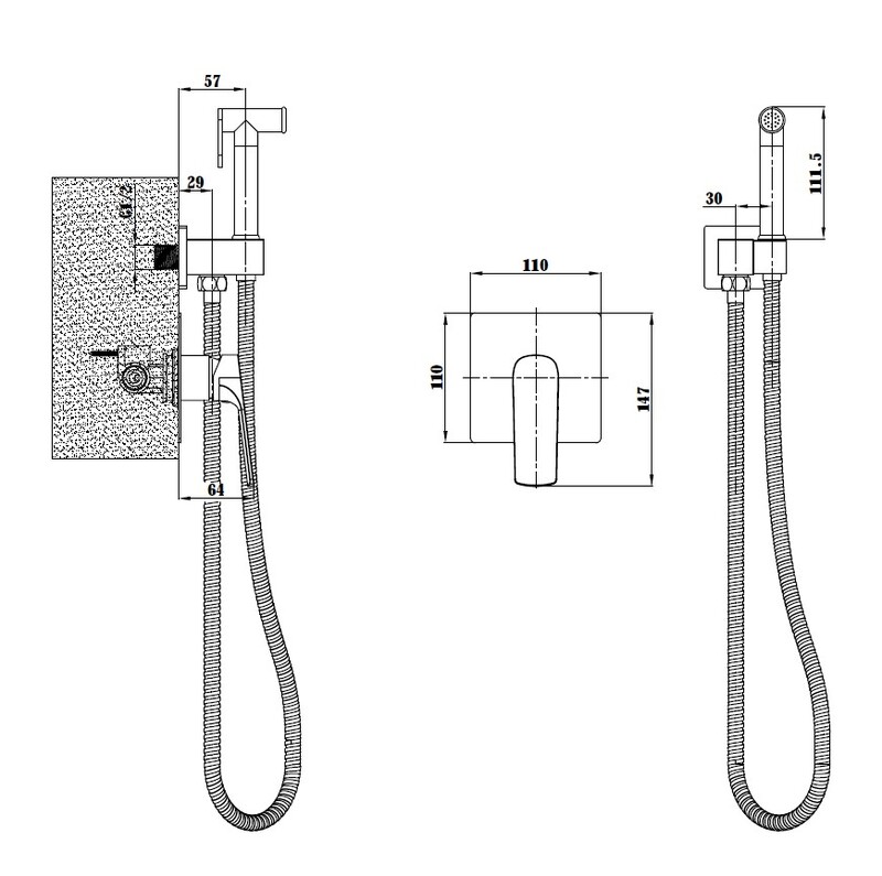 S30.53.09 Смеситель с гигиеническим душем встраиваемый SPLENKA (графит)