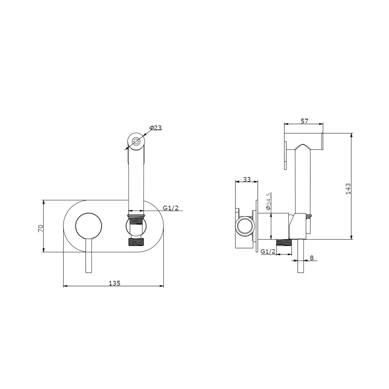 Встраиваемый смеситель с гигиеническим душем RUSH арт. CA1435-96 из коллекции Capri изготовлен из высококачественной латуни и имеет рычажное управление.