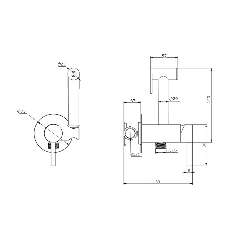 Встраиваемый смеситель с гигиеническим душем RUSH арт. CA1435-98 из коллекции Capri изготовлен из высококачественной латуни и имеет рычажное управление.