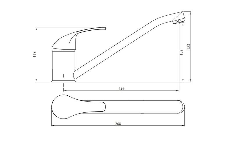 В смеситель установлен картридж D-40 с керамическими пластинами. Высота смесителя 118мм. Излив поворотный 245мм. Высота излива до аэратора 132мм. Аэратор изготовлен из пластика с нержавеющим корпусом, угол наклона аэратора- 15 гр.