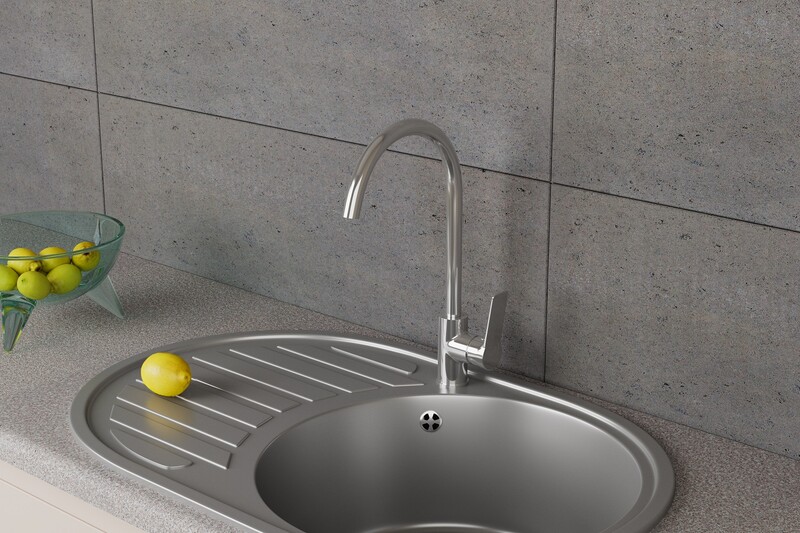 Смеситель для кухни с высоким поворотным изливом RUSH арт. HA1935-22 с металлической ручкой из коллекции Haiti изготовлен из высококачественной латуни и имеет рычажное управление.