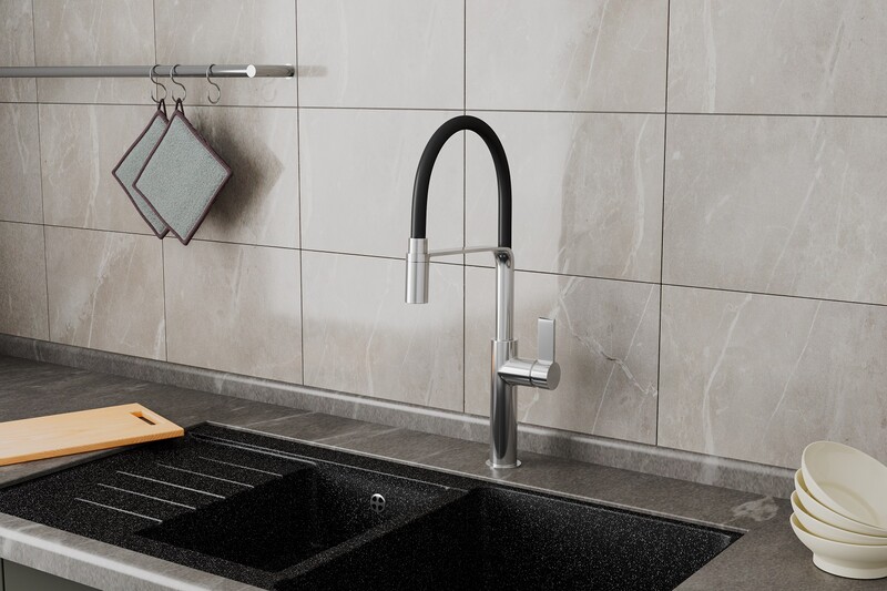 Смеситель для кухни с гибким изливом RUSH арт.MS9035-35Black с металлической ручкой изготовлен из высококачественной латуни и имеет рычажное управление.