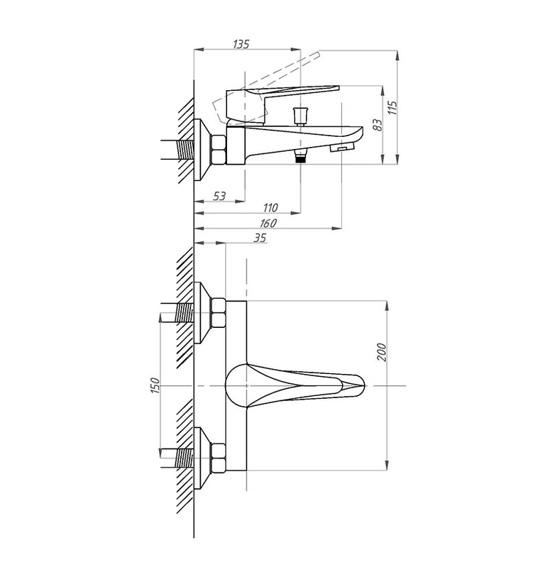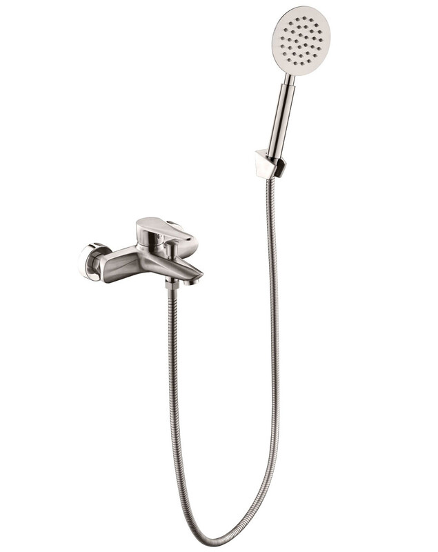 Смеситель, эксцентрики-2шт., декоративная шайба (отражатель)-2шт., шланг душевой, лейка душевая-3 режима, держатель душевой лейки, паспорт.