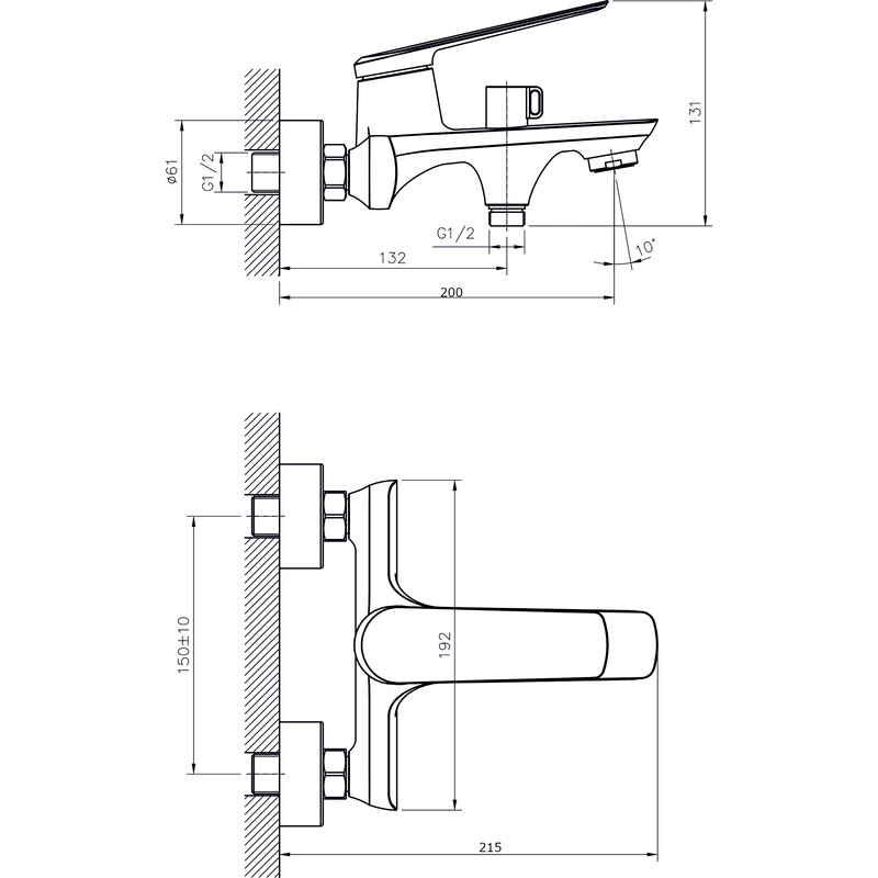 Смеситель для ванны RUSH арт. BE5535-44 из коллекции Bering с металлической ручкой, изготовлен из высококачественной латуни и имеет рычажное управление.