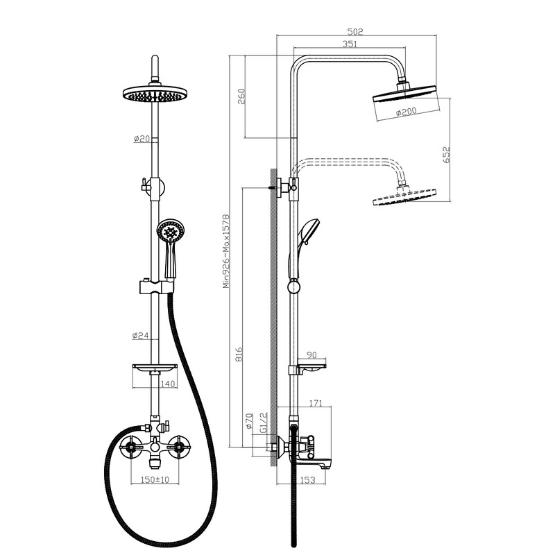 В комплекте: Пластиковый аэратор с функцией легкой очистки Керамические вентильные головки (угол поворота - 90⁰) Двухпозиционный картриджный переключатель (угол поворота - 90⁰) Двухпозиционный картриджный переключатель (угол поворота - 180⁰) Верхняя поворотная душевая лейка «Тропический дождь» Ø200 мм с функцией легкой очистки Аксессуары в комплекте (шланг 1,5 м, 5-функциональная лейка Ø85 мм с функцией легкой очистки, регулируемое по высоте крепление для лейки) Присоединительная группа (эксцентрики с отражателями) для настенного крепления Металлические рукоятки
