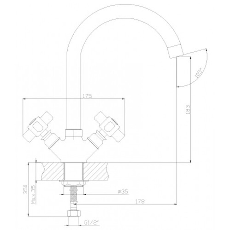 Смеситель Кухня 1/2 м/к U-излив, хром ROSSINKA Z02-71