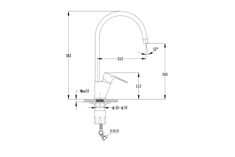 Смеситель Кухня EWIGSTEIN d=35мм U-образ.боковой (иней) (50235011)