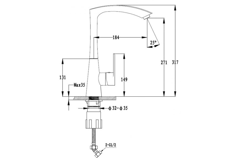 Диаметр отверстия в раковине, мм: 35