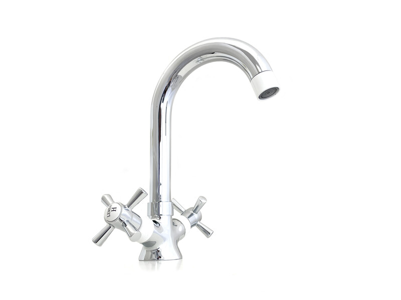 Смеситель Кухня Lemen 1/2 м/к, КРЕСТ, белый, на гайке (LD 91557W)