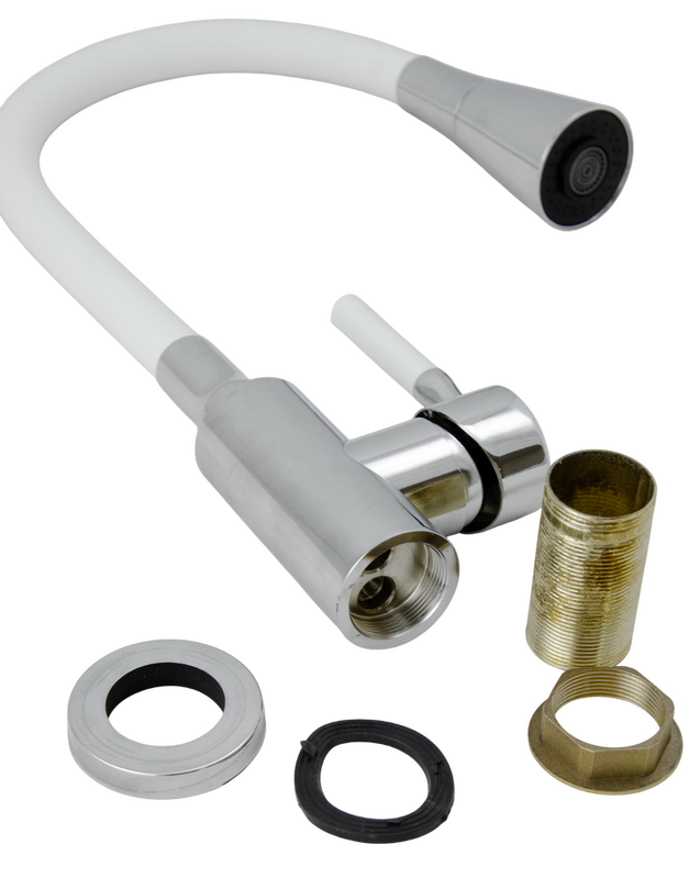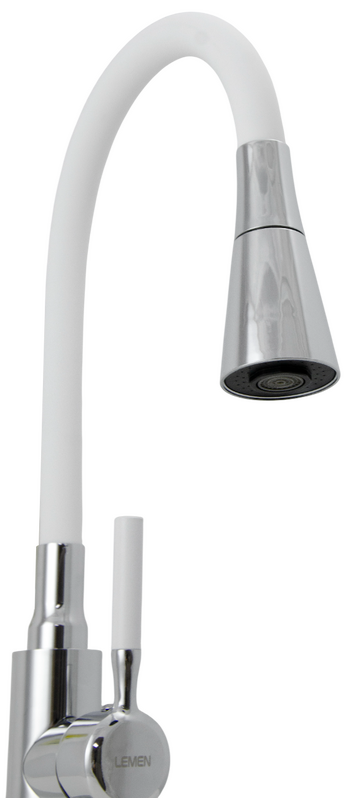 Смеситель Кухня Lemen D35 (белый гибкий излив,лейка-аэратор,гайка,цинк) LA-9022-W6