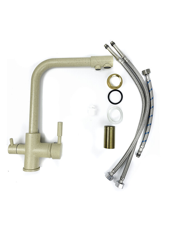 Смеситель Кухня SANTREK AQUA серии "PRESTIGE" с подключением фильтра питьевой воды используется для вывода очищенной воды от питьевого фильтра. Использование такого смесителя обеспечивает более аккуратный внешний вид мойки, чем при использовании отдельных смесителей под водопроводную и питьевую воду. Цветное покрытие создает неповторимый гармоничный дизайн при сочетании с мойкой такого же цвета.