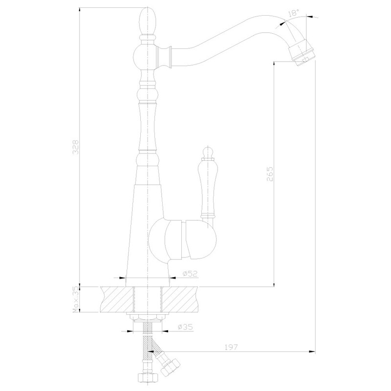 Смеситель Кухня шар d35 Г-образ излив Ретро на Гайке, хром ROSSINKA Z35-20U