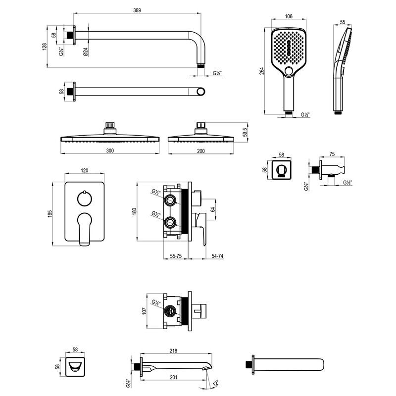 Смеситель одноручный (35 мм) для ванны и душа, встраиваемый, с аксессуарами, хром/бел ROSSINKA W35-55