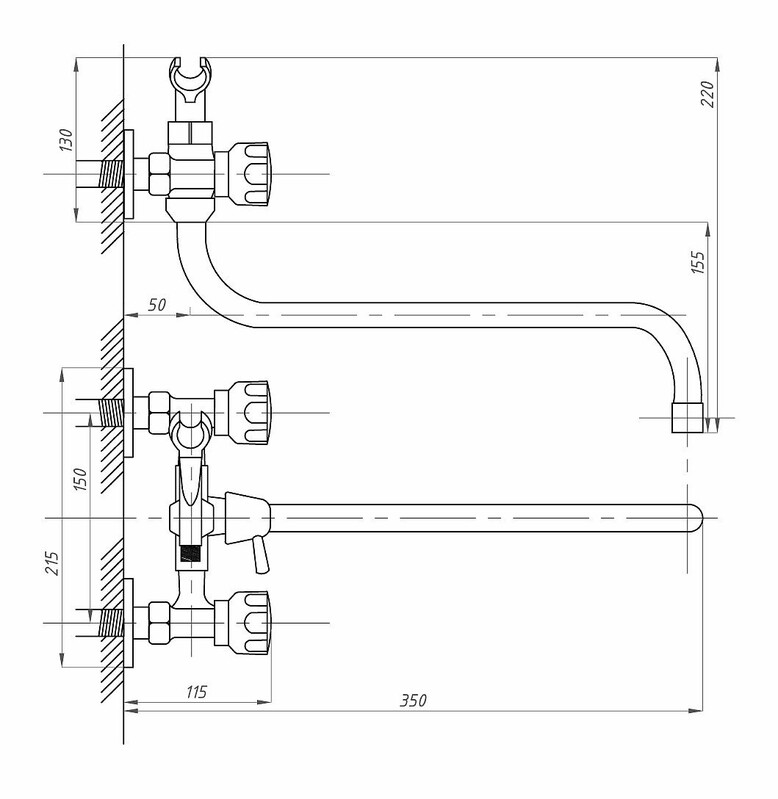 Смеситель Ванна 1/2 м/к (сборный) ПСМ-150-К/77 пластик