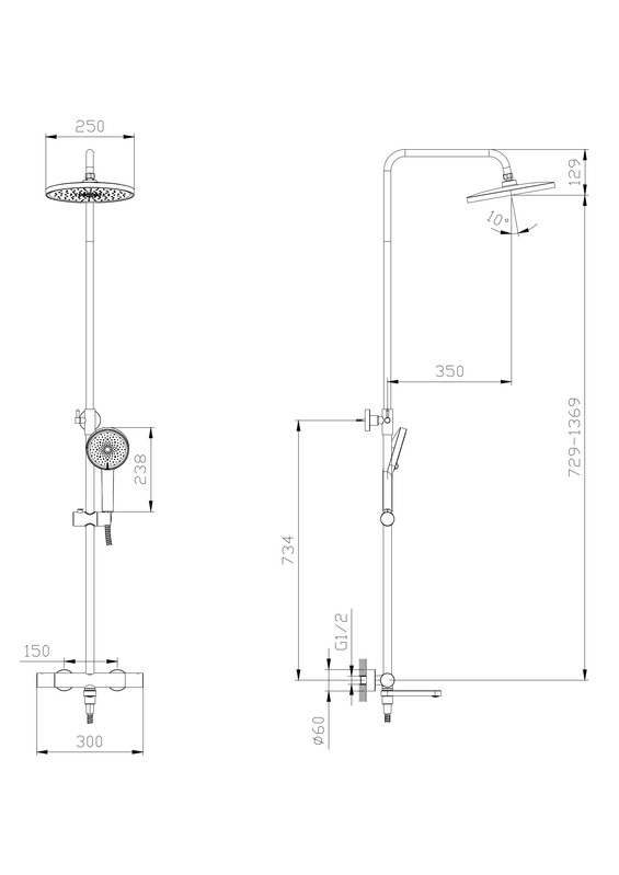 Душевая система RUSH изготовлена из высококачественной латуни. В душевую систему установлен термостатический картридж D-34.