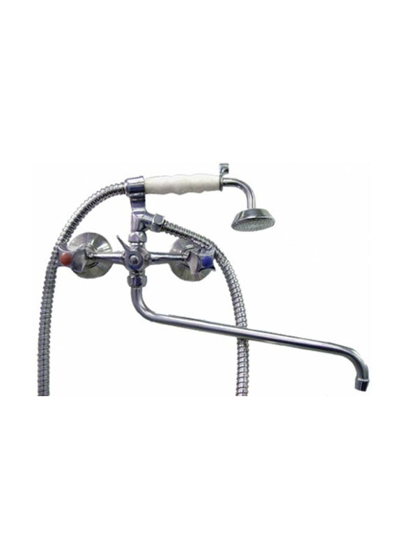 Смеситель Ванна Казань 1/2 м/к (КС 97002/97105)мет.мах, отечест. испол. мет.флаж,мет.шланг, пл.лейка