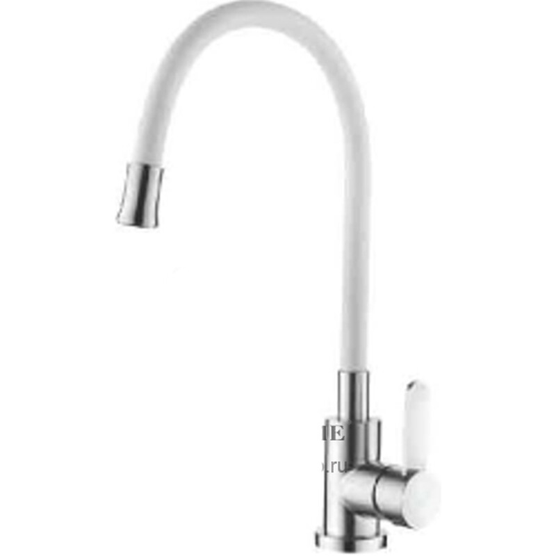 74004-3 Смеситель Кухня LEDEME НЕРЖАВЕЙКА с силиконовым изливом МАКСИ (белый/сатин)