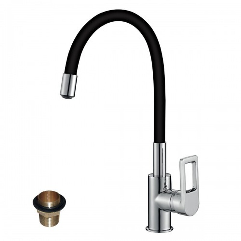 Смеситель Кухня шар d35 гибкий ЧЕРНЫЙ излив, на гайке, хром ROSSINKA Z35-35U-Black