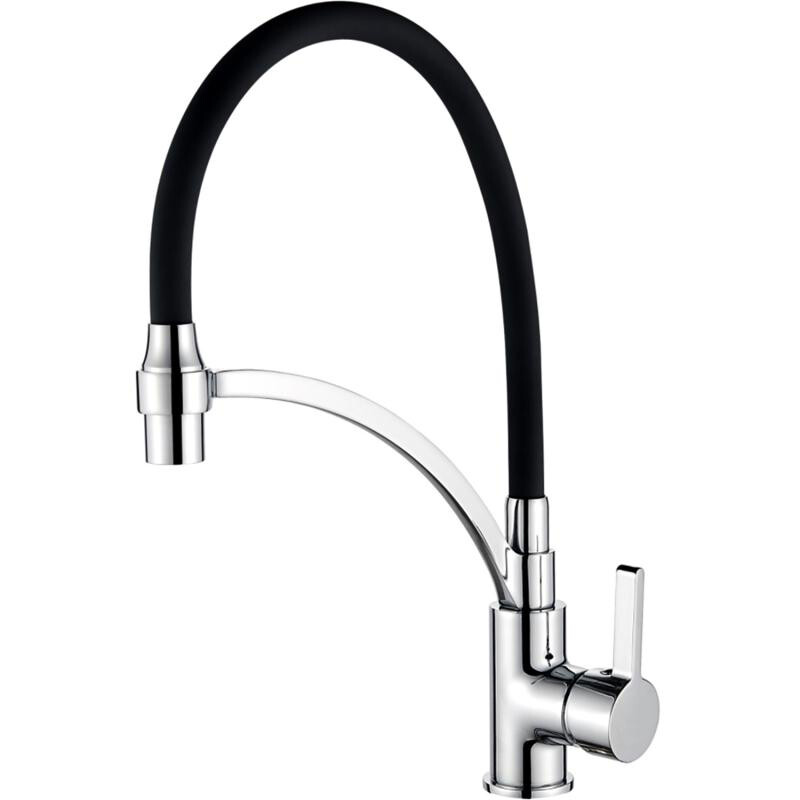 4399-2 Смеситель Кухня LEDEME с силиконовым изливом, (черный/хром)