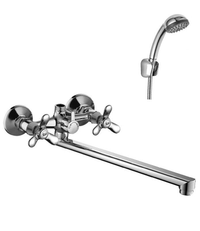 Смеситель Ванна шар d35 с душевой лейкой, ручной лейкой, гусаком, хром ROSSINKA B35-46