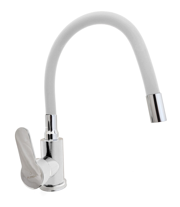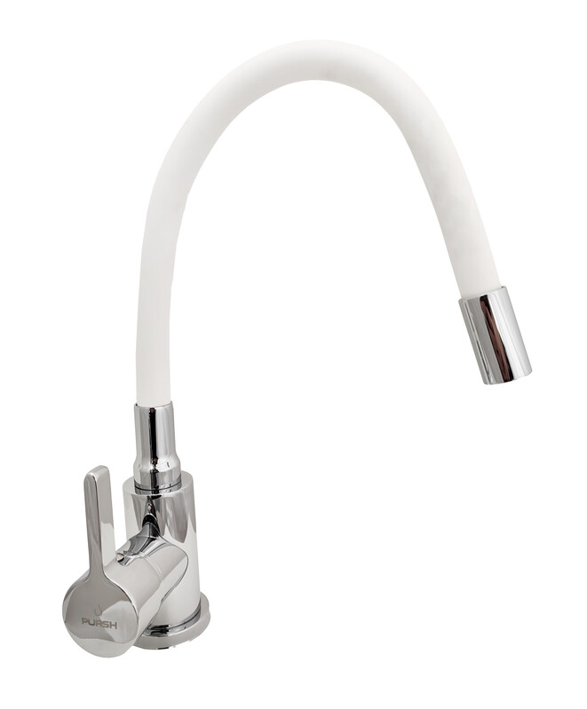 LEMEN. Смеситель Кухня PURSH D35 с белым гибким изливом (белый/хром,нержавеющая сталь,гайка) R99W303W