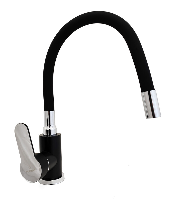 LEMEN. Смеситель Кухня PURSH D35 с черным гибким изливом (черный/хром,нержавеющая сталь,гайка) R99E303E