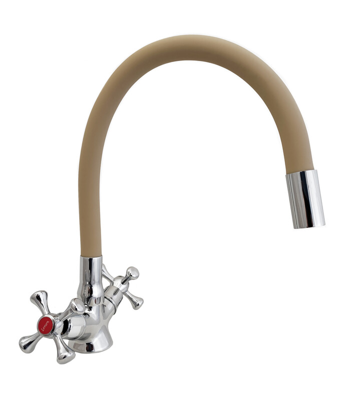 Смеситель Кухня Lemen маховик Крест (LD 91265-М9) на гайке бежевый гусак