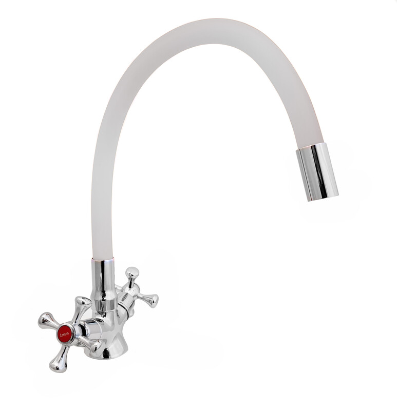 Смеситель Кухня Lemen маховик Крест (LD 91265-W9) на гайке белый гусак