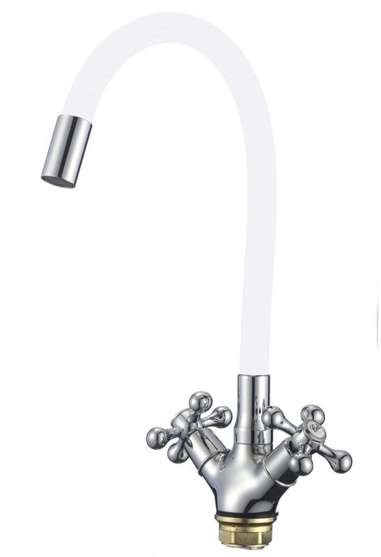 FM4319-02 Смеситель Кухня FMARK с гибким цвет. изливом (цвет излива белый)/Хром 1/2 м/к, на гайке, Крест