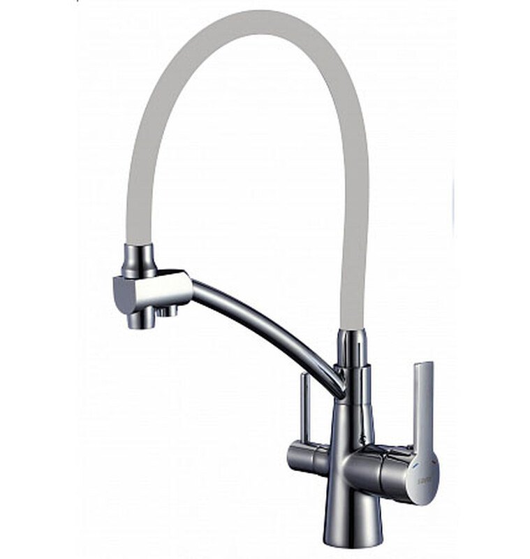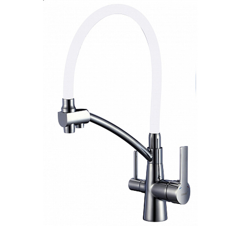 S-L1805L-02 Смеситель Кухня SAVOL с фильтром питьевой воды (цвет излива белый) шар. d=35, Сатин АКЦИЯ!!!