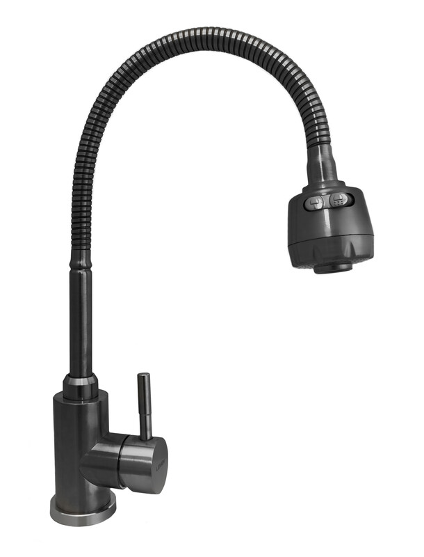 Смеситель кухня Lemen D35 (черный гибкий излив,лейка-аэратор,нержавеющая сталь,черный,гайка) LA9009E