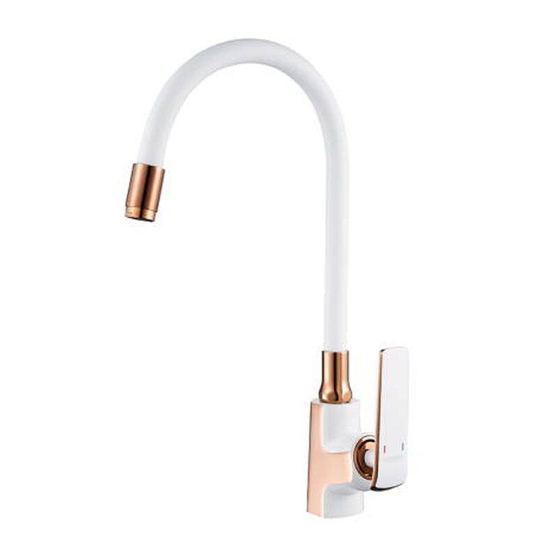 4074WR-3 Смеситель Кухня LEDEME с силиконовым изливом шар. d-35 на гайке (белый/роз золото)